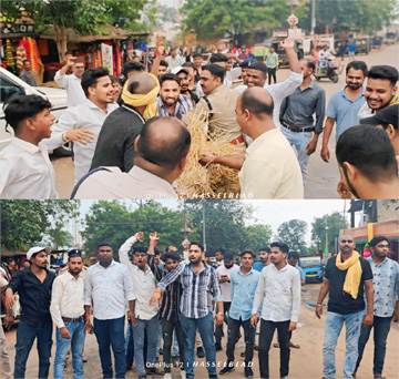 भ्रष्टाचार और नकली डिग्री घोटाले के खिलाफ सडक़ पर उतरे युकां, एनएसयूआई कार्यकर्ता , नवाडीह चौक में पुतला दहन