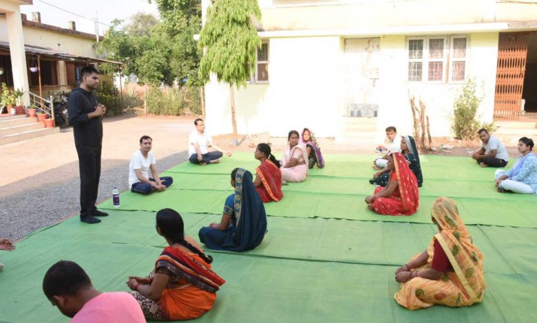 कलेक्टर ने आयुष्मान आरोग्य मंदिर तुमड़ीबोड़ के योगाभ्यास में लिया हिस्सा
